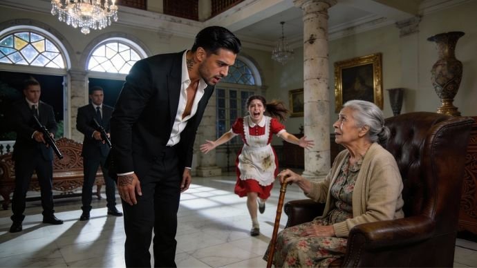 Belle fand sie genau in dem Moment, als die Hölle losbrach. Die Eingangstür flog auf. Asher Kane stürmte herein, der Anzug zerrissen, die Knöchel blutig – frisch zurück von der Gewalt, die seine Nächte beherrschte. Seine Instinkte übernahmen sofort. Ein Eindringling. Seine sechs Leibwächter zogen die Waffen. Rote Laserpunkte tanzten über die Brust der alten Frau. Belle warf sich schluchzend über ihre Großmutter und flehte um Gnade. Sie wartete auf den Schuss.