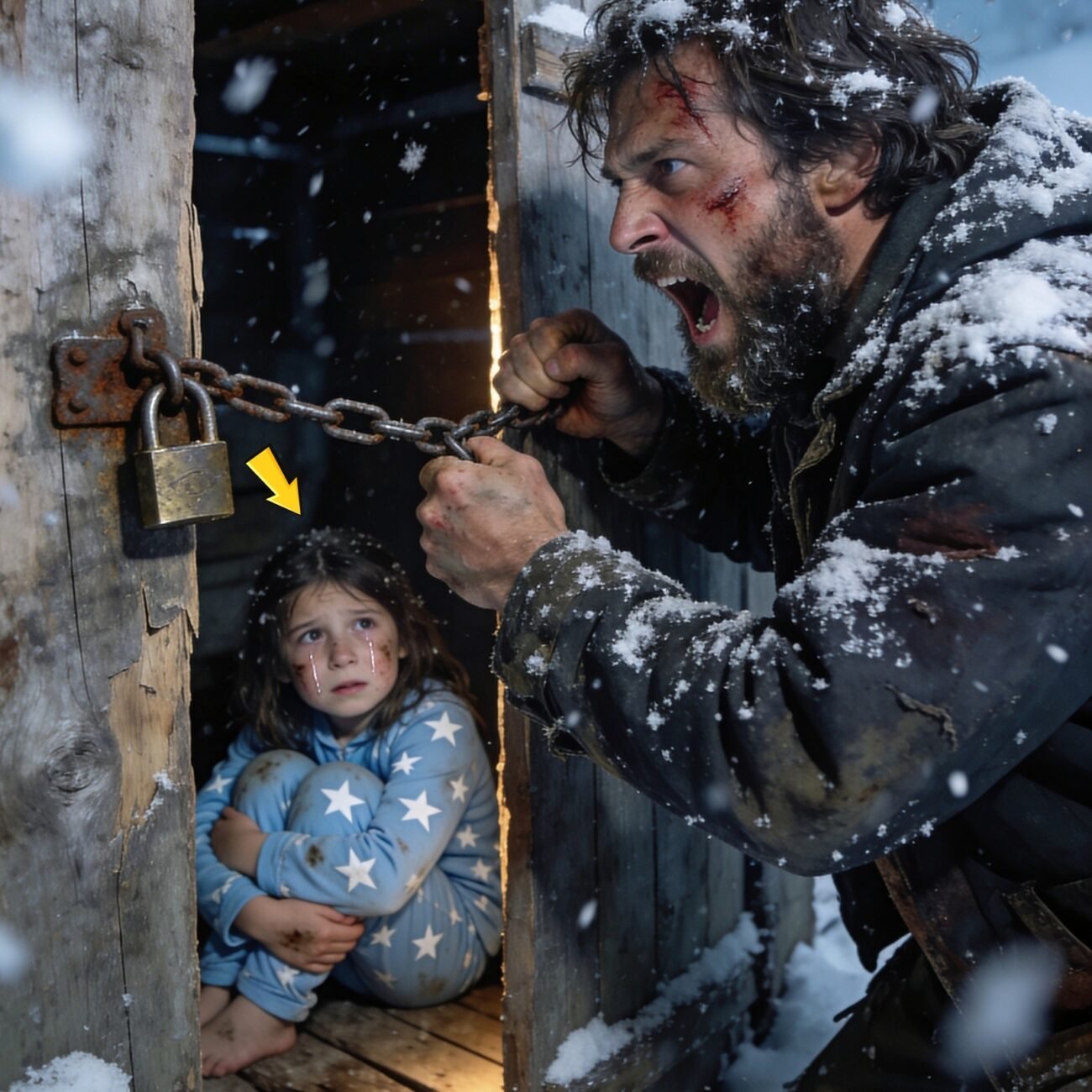 Ich holte ein Brecheisen aus einem nahegelegenen Schuppen und hebelte das Schloss auf. In der eiskalten Hütte saß meine Tochter in ihrem dünnen Schlafanzug zusammengerollt auf dem Betonboden und zitterte heftig. Sobald ich sie erreichte, klammerte sie sich an mich.