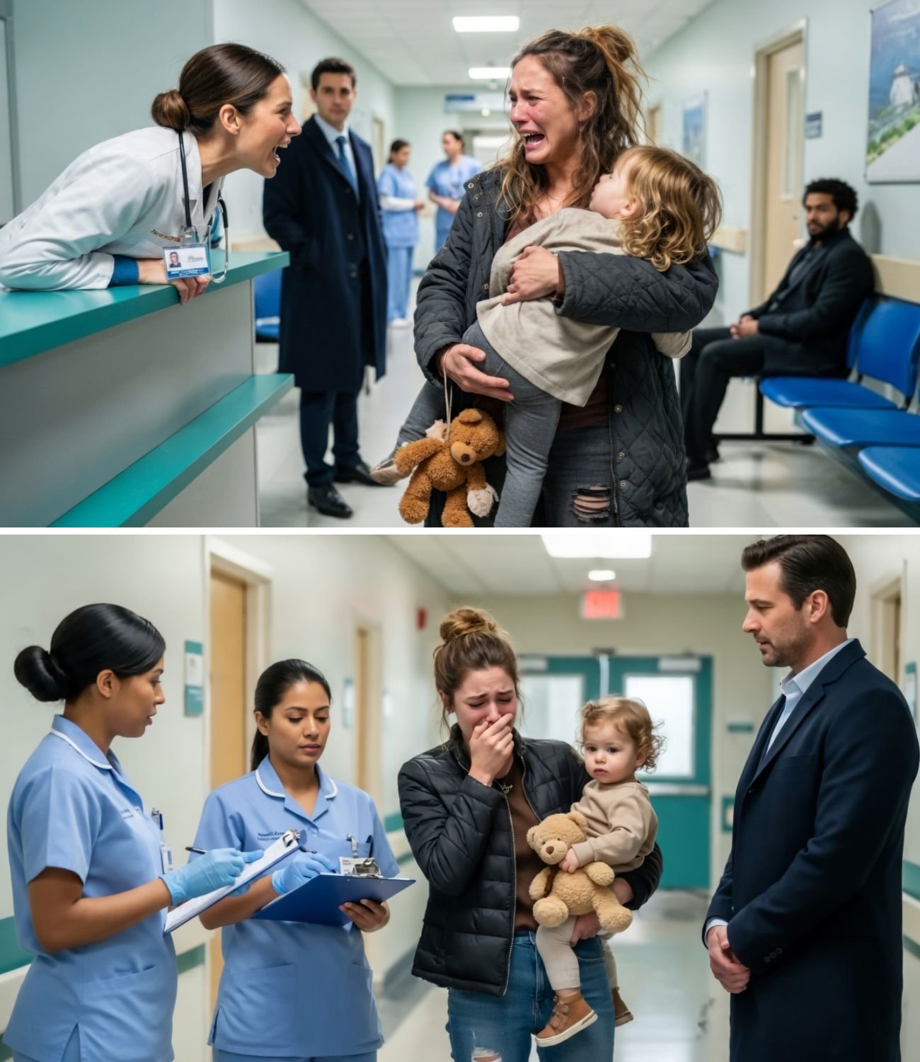 Zwischen den müden Gesichtern und den eiligen Schritten des Personals erhob sich plötzlich eine einzige Stimme über alle anderen – gebrochen, zitternd und von tiefer, grenzenloser Not gezeichnet.