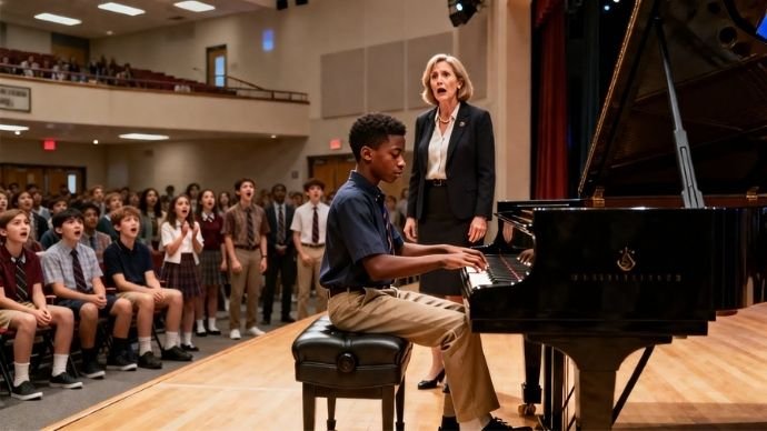 Elijah kehrte als Held an die Schule zurück. Doch er blieb bescheiden. Für das große Finale des Talentwettbewerbs, das nun stadtweit Aufmerksamkeit erregte, wurde ein neuer Steinway-Flügel von einem anonymen Spender geliefert.