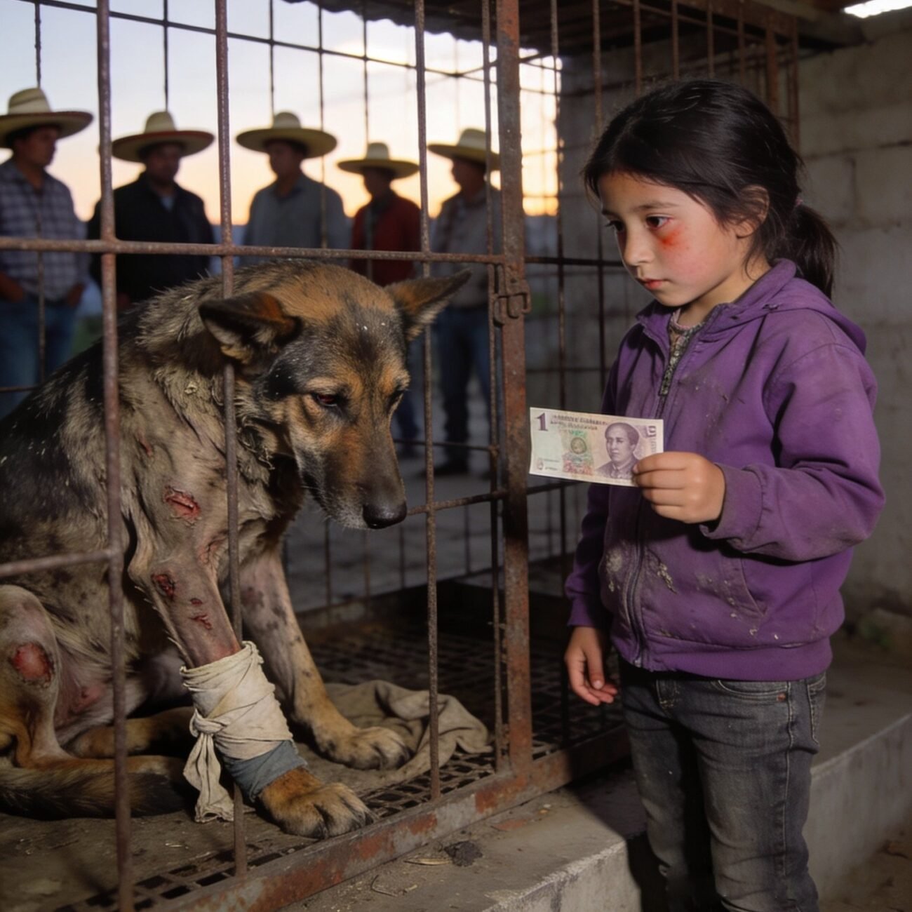 Zuerst war es ein Kommentar in der Tierklinik, dann ein Gemurmel auf dem Platz und schließlich eine Geschichte, die niemand ignorieren konnte. Eine Lokalzeitung veröffentlichte das Foto: Ein kleines Mädchen in einem lila Sweatshirt neben einem verletzten Hund, der für einen einzigen Peso verkauft worden war.