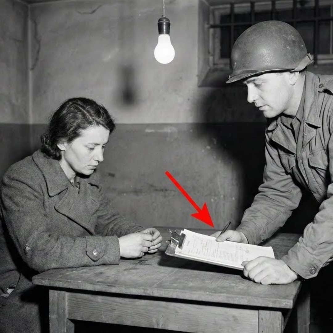 Ihre Schultern zogen sich zusammen. Ihre Atmung veränderte sich. Bis zu diesem Moment bestand der Krieg aus Lärm, Befehlen und Parolen. Das war anders. Das war persönlich. Der Mann auf der anderen Seite des Tisches erhob seine Stimme nicht. Er hat sie nicht berührt. Er sprach nur Deutsch, ruhig, präzise. Das Geräusch durchdrang die Distanz, die sie aufgebaut hatte, um zu überleben.